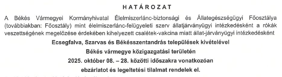 Ebzárlat és legeltetési tilalom