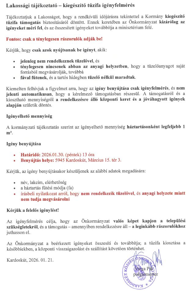 Kiegészítő tüzifa igényfelmérés