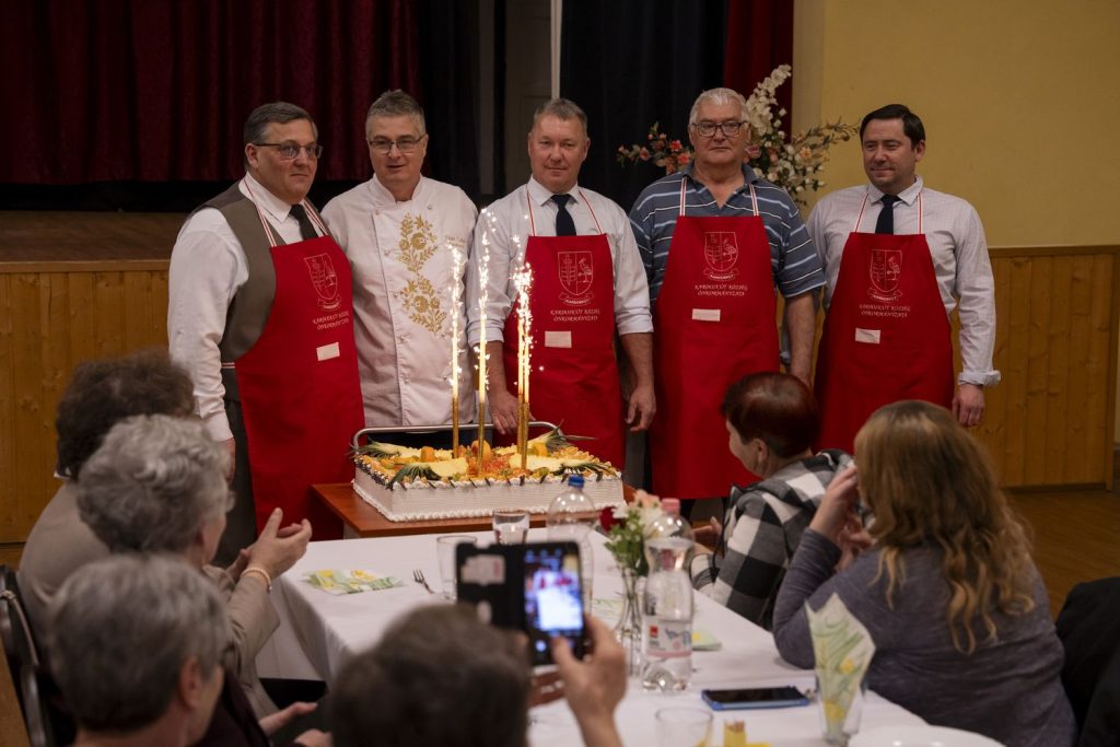 A program végén még egy édes meglepetés is várta a résztvevőket. A testület meghívására Ficsor Zoltán mestercukrász érkezett a rendezvényre, aki egy hatalmas tortát szeletelt fel a jelenlévőknek. A látványos desszert méltó lezárása volt az ünnepi délutánnak.