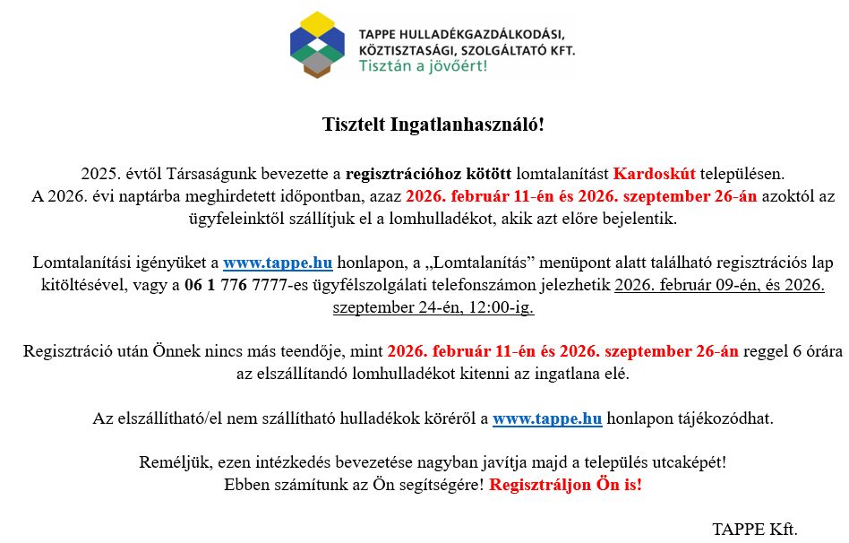 A TAPPE Kft. közleménye
